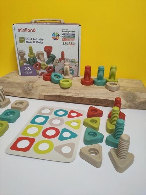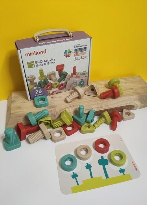 Les enfants doivent repérer les formes, les couleurs et visser les écrous et boulons dans les cartes.