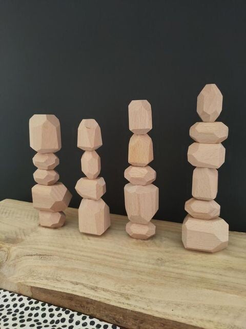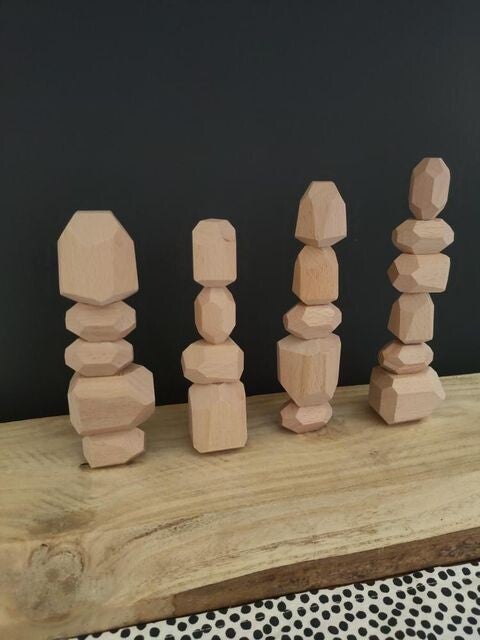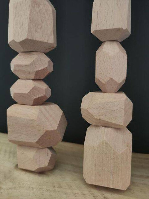20 Rochers Empilables en bois d’Hévéa naturels, sans peinture