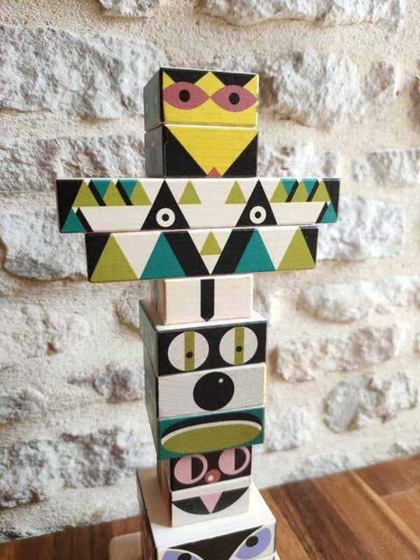 Ces blocs de bois permettent aux enfants d'être créatifs en assemblant n'importe quelle combinaison. Ils peuvent faire des compositions colorées ressemblant à l'art sacré de certains groupes autochtones du monde.
