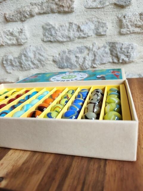 La marque Française Billes And Co a souhaité mettre en avant les Billes, comme des œuvres d’art. Elles sont présentées dans de jolies boîtes, rangées à la main selon leur couleur ou leur thématique : animaux, nature, voyage...