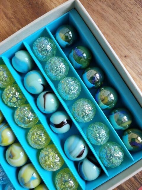 La marque Française Billes And Co a souhaité mettre en avant les Billes, comme des œuvres d’art. Elles sont présentées dans de jolies boîtes, rangées à la main selon leur couleur ou leur thématique : animaux, nature, voyage...