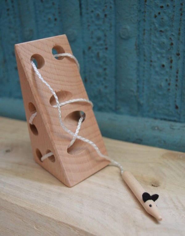 Avec un peu d'adresse, la souris se fraye un chemin dans le bout de fromage et favorise ainsi le développement de la dextérité.
