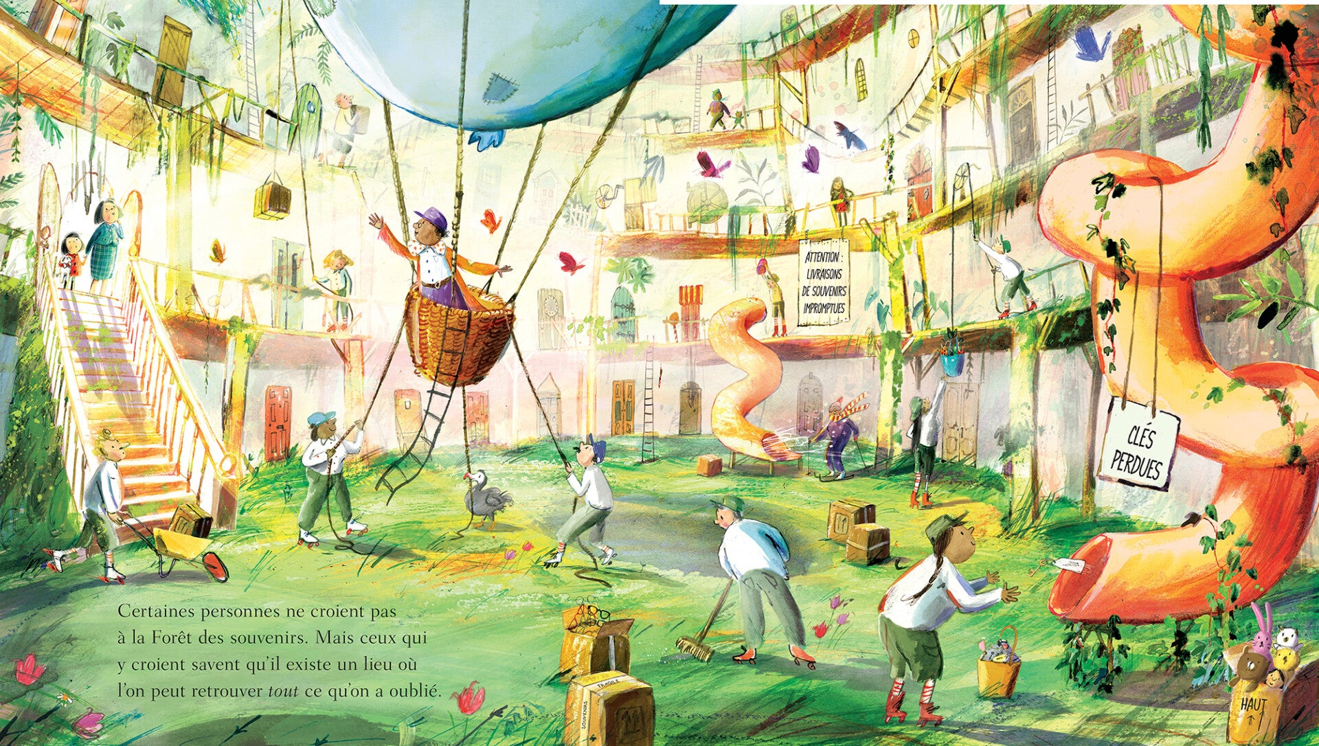 Un univers poétique qui fera rêver les enfants : la Forêt des souvenirs, avec ses cabanes dans les arbres, dans lesquelles on retrouve tout ce que l’on a oublié : son chemin, ses clés, des odeurs…