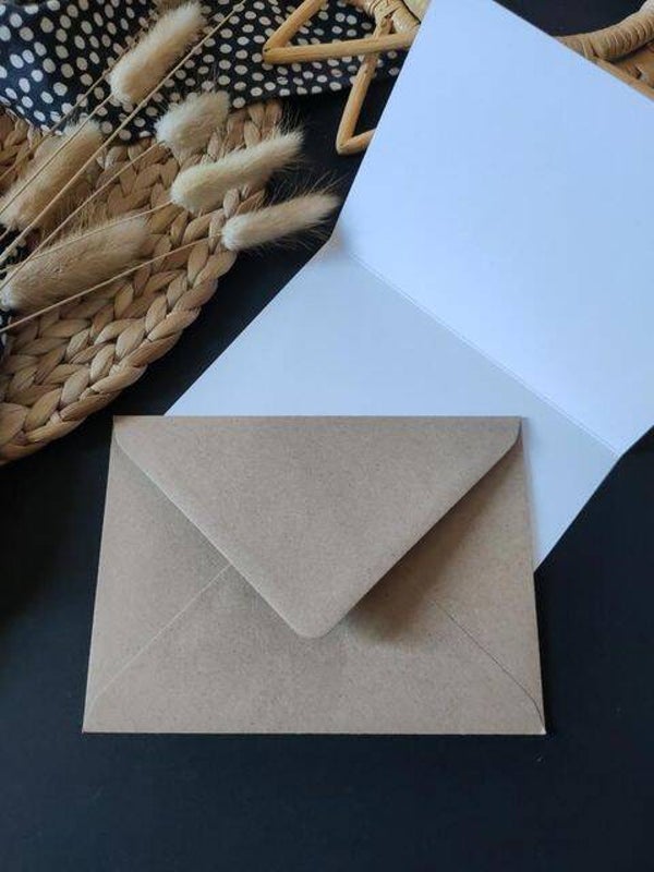 La carte est vendue avec une enveloppe kraft marron fabriquée à partir de matériaux 100 % recyclés